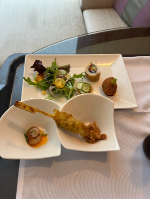 아이는 해피아워는 즐기지 못하지만 룸으로 한 종류씩 주십니다. 한 피스씩만 주시기 때문에 양이 적을 수 있습니다.